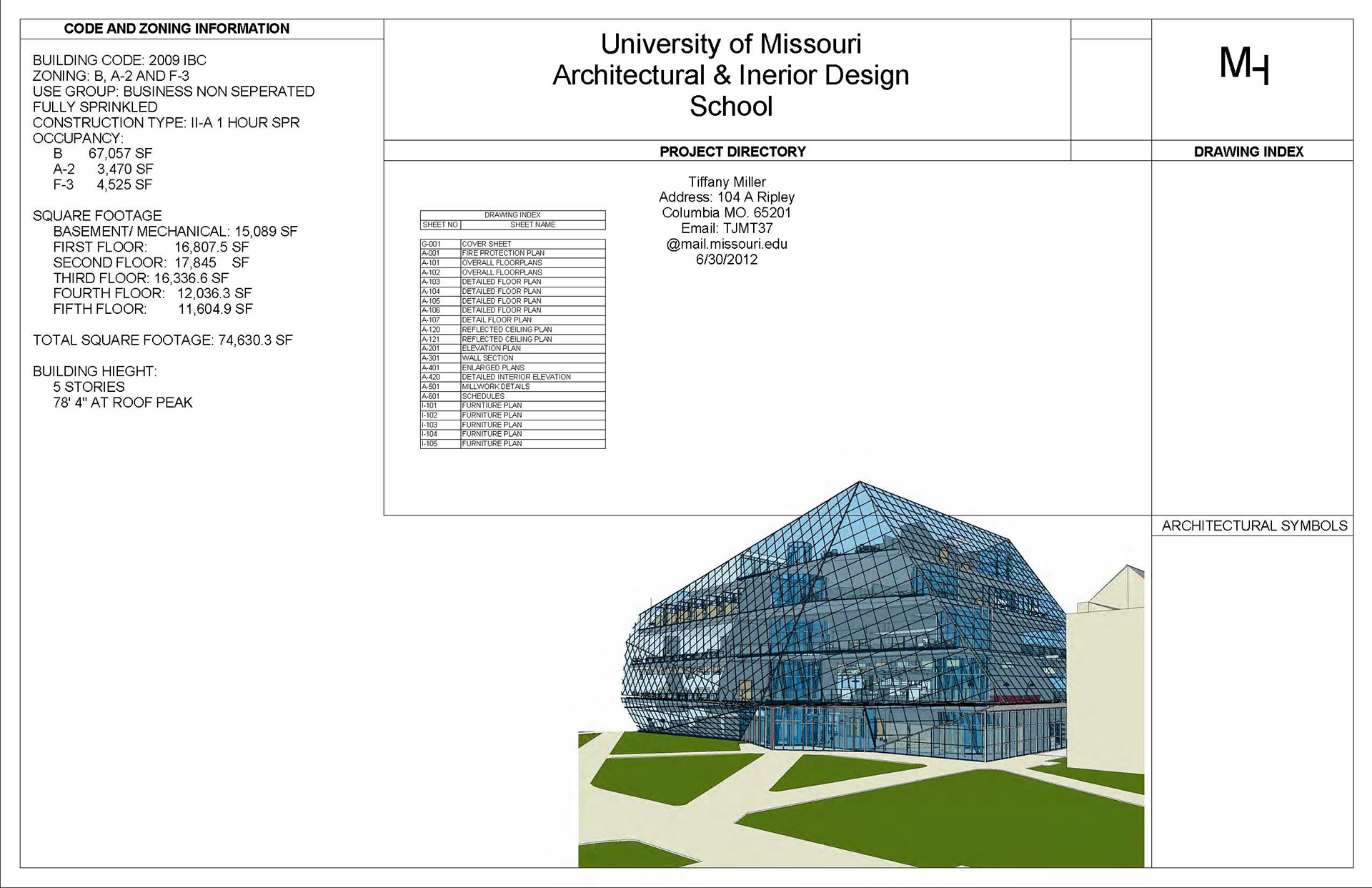 This project was constructed during my undergraduate degree at the University of Missouri. I choose to redesign the architecture and interior design building on the campus as my case study. Documents were made in Revit and AutoCad.